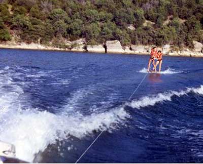 Dad on a slalom at Possum Kingdom Lake TX. Note the gear