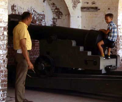 Dad and Tim at a gun position Ft Pulaski FL.