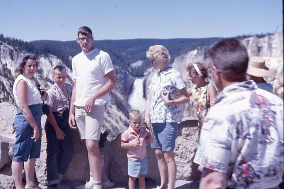Grandma Kittleson, Carl, Glenn, Norm, and Mom at the lower falls of yellowstone.
