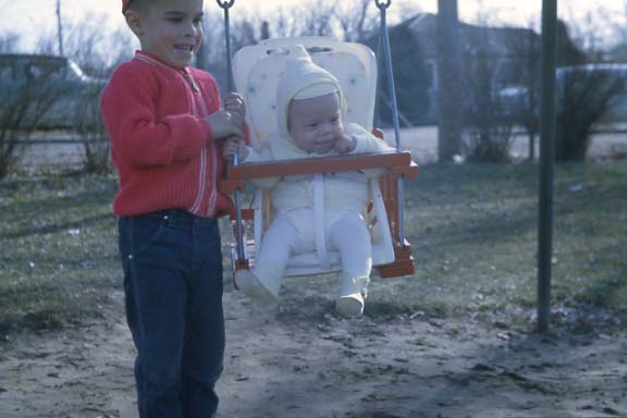 Norm helps Tim with his first swing ride.