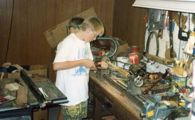 JoAnn and Dad doing a little shade tree mechanic work