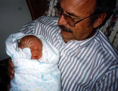 Megan has a hold of her Grandpa Burtness