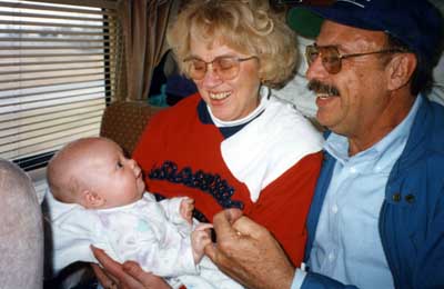 Megan on her first road trip with Grandma and Grandpa Burtness