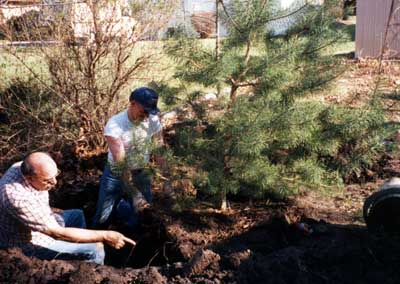 Dad supervising some landscaping in the back yard.