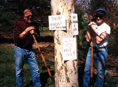 JoAnn has Norm up a tree at Silver Lake IA