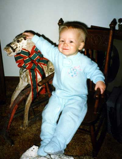 Megan playing with Great Grandpa Iverson's rocking horse