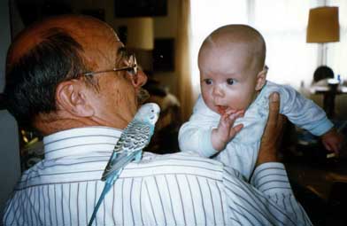 Dan and Ruth in Manhattan with Shelby the parakeet