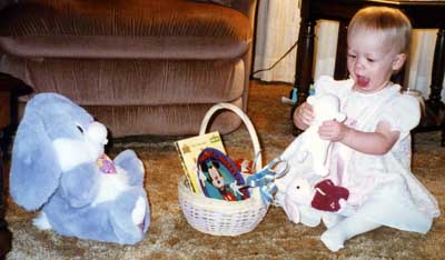 Megan playing in her Easter dress
