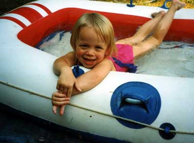 Megan thinks grandma & grandpa's boat makes a good pool.
