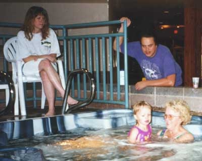 Megan and grandma relax in the hot tub, mommy can't get in or she may cook my little sister.