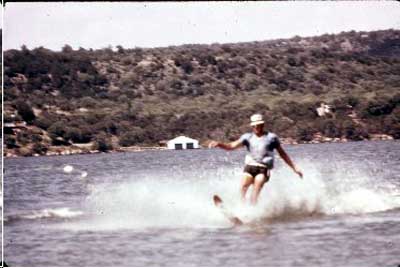 Dad on a slalom at Possum Kingdom Lake TX. Note the gear