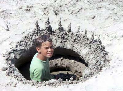 Norm Building a sand castle on Padre Island TX