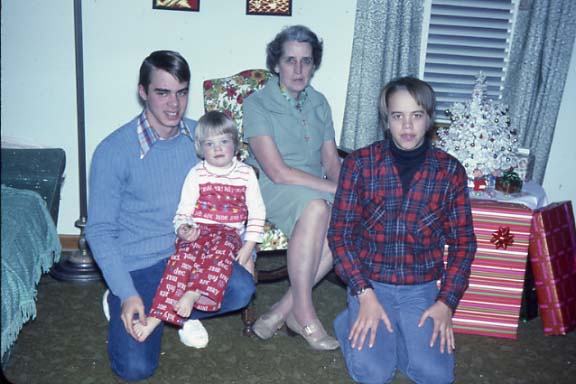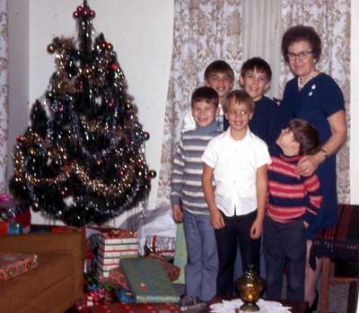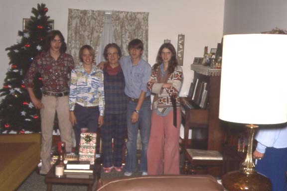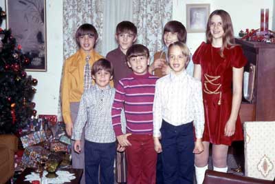 Grant, Tim, Chris, Norm, Steve, Mike, and Ginny at Grandma Iverson's for Christmas