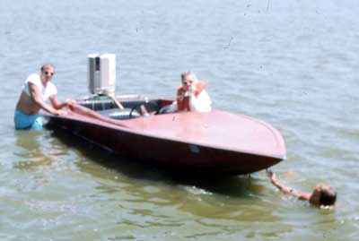 Grandma Iveson in the new speed boat on Silver Lake IA