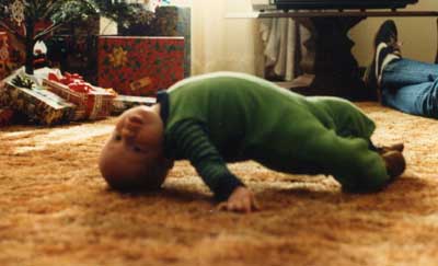 Dan started different, this is how he crawled Sliding on his head.
