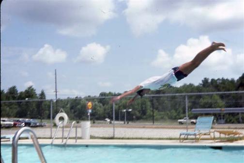 Norm Diving at the hotel pool in Ozark AL