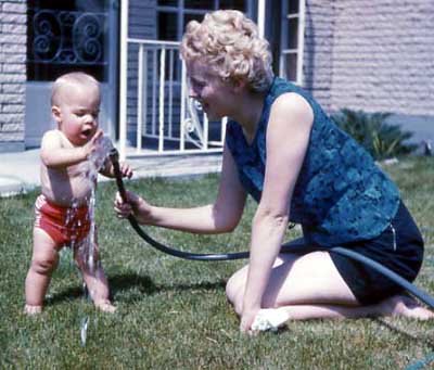 Norm and Mom playing with the hose in Ogden UT