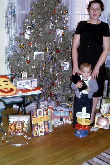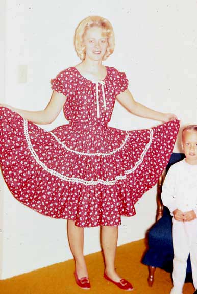 Mom in her fancy square dancing dress, Tim headed to bed