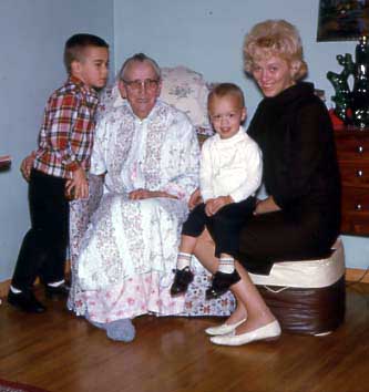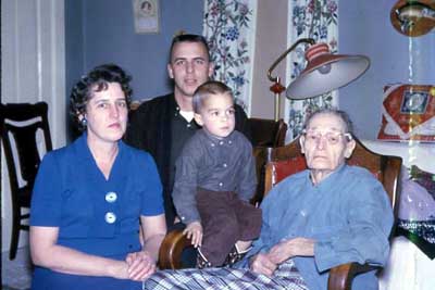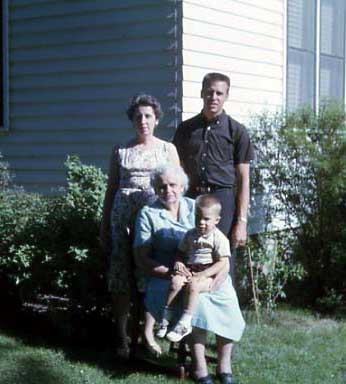 Norm, Great Grandma Iverson, Tim, and Mom in Albert Lea MN