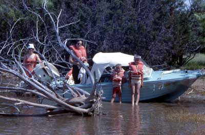 Mom, Grandma Iverson, Tim, and Norm by the boat in