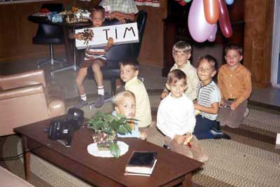 Tim's Birthday party group he is the only one with a name tag
