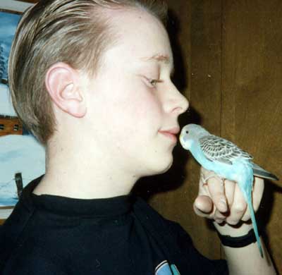 Dan and Ruth in Manhattan with Shelby the parakeet