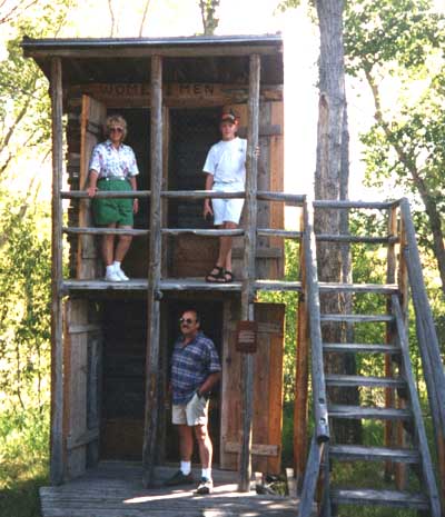 A fancy outhouse, Dad was wishing later he used the one up stairs.