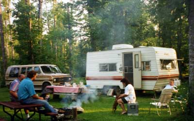 Dad, Glenn, and Dan enjoying a rain day in the camper