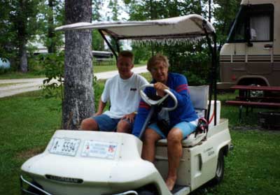 Dan gets a ride from the campground manager Julie Gutz