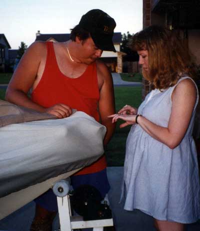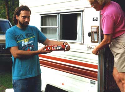 JoAnn and Dad doing a little shade tree mechanic work