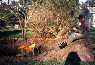 Dad supervising some landscaping in the back yard.