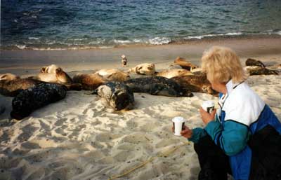 Mom watching some sun bathers on the beach at San Dieo