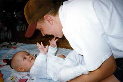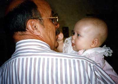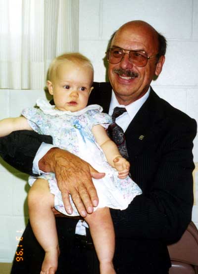 Megan has a hold of her Grandpa Burtness