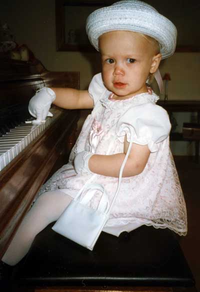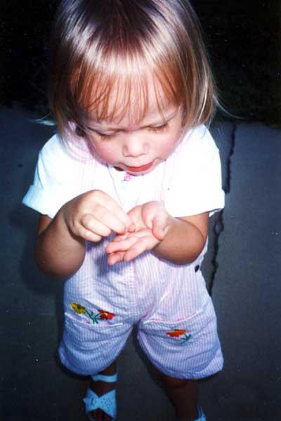 Megan playing in her Easter dress