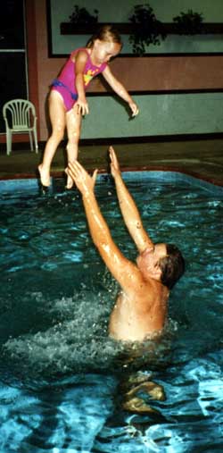 Megan flying with a little help from her Dad