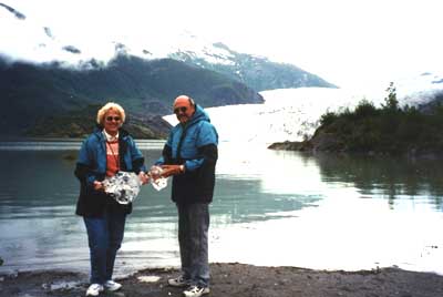 Mom & Dad with their pieces of the Mendenhall Glacier